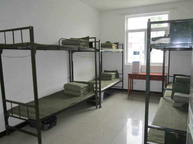 核心提示:學(xué)員宿舍是4-6個(gè)人每間,屬于上下鋪形式的集體宿舍,宿舍里已經(jīng)安裝了括電風(fēng)扇等設(shè)施。